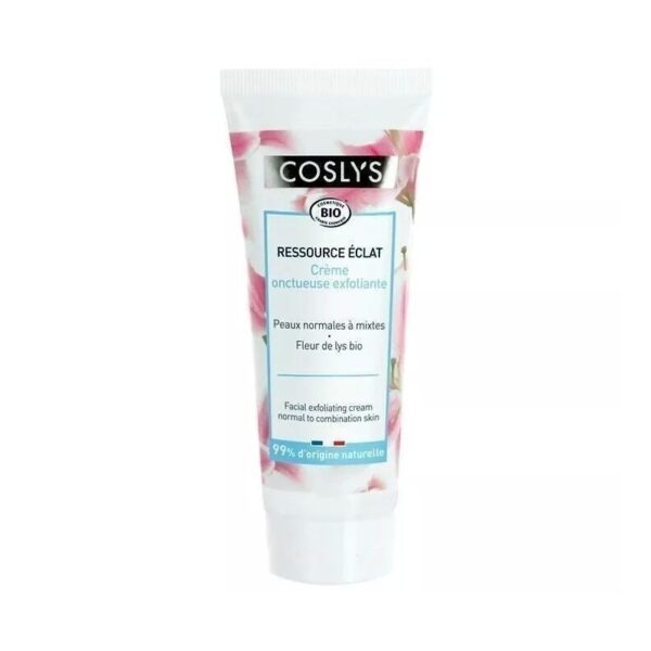 La Crème onctueuse exfoliante Coslys à base de poudre de riz élimine les impuretés et affine le grain de peau.